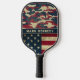 Patriotic American Flag Rustic Camo Pattern Name Pickleball Paddle