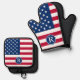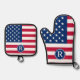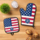 Patriotic American Red White Blue Custom Monogram Oven Mitt & Pot Holder Set