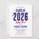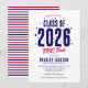 Invite your guests to a backyard BBQ graduation party with these charming invitations. Featuring a patriotic red and blue star design, the title "Class of 2024" boldly stands out, making it clear that this celebration is in honour of the graduating class. And with a customizable text template, you can easily add your own personal touch, making each invitation unique and special.