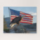 Patriotic Bald Eagle in front of American Flag Jigsaw Puzzle