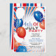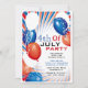 This July fourth invitation says "party" right from the start. Festive red, white and blue balloons and stripes announce your patriotic pride, so let the good times begin.