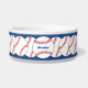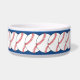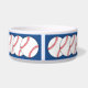 This patriotic pet bowl features red and white baseballs on a blue background for a special sports fan's pet. Easily customize the name or just delete it.