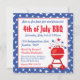 Patriotic design featuring a red barbecue grill with fireworks. Star border or star and stripes border. Create the perfect invitation for your next patriotic barbecue or family reunion on the 4th of July, Memorial Day, Labour Day or any summer party. Matching postage, caps, T-shirts, bags, mugs and more! Completely customizable design borders and text. PinkInkArt original!