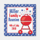 Patriotic design featuring a red barbecue grill with fireworks. Star border or star and stripes border. Create the perfect invitation for your next patriotic barbecue or family reunion on the 4th of July, Memorial Day, Labour Day or any summer party. Matching postage, caps, T-shirts, bags, mugs and more! Completely customizable design borders and text. PinkInkArt original!