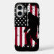 Patriotic Bigfoot iPhone Case. Featuring a bold silhouette of the legendary Sasquatch against a distressed American flag backdrop, this case is perfect for cryptid enthusiasts and lovers of the great outdoors. Designed for durability and style, it provides reliable protection for your phone while making a statement.