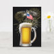 Sparklers and an American flag in beer mug with fireworks on black background for birthday.