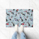 Patriotic Boston Terriers dressed in red, white and blue outfits with stars and stripes. Dog bones and star background Boston Terrier dog pattern.