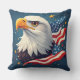 Patriotic Cartoon Eagle with American Flag Throw Pillow