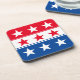 These hard plastic coasters are shown in a patriotic July 4th stars print design.