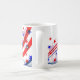 This ceramic coffee mug is shown with a patriotic July 4th stars and stripes print.