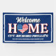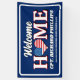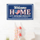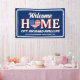 Fun US flag heart design on a dark blue background for this personalized WELCOME HOME banner.