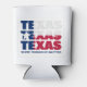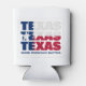 Patriotic Custom TEXAS FLAG can cooler. Stylish, patriotic customizable TEXAS FLAG single-can cooler, showing TEXAS TEXAS TEXAS designed in the flag of Texas. This design appears on the front and back. There is CUSTOMIZABLE TEXT that reads WHERE FRIENDSHIP MATTERS, which you can personalize by adding your name, motto or creating your own text. The state motto of Texas is Friendship, and the Spanish word, 'tejas', means 'friends', from which the name Texas is said to derive. This stylish Texas can cooler would make a great favour giveaway or stocking stuffer gift for Texan friends, for outdoor parties and BBQs, and for anyone who loves the American 'Lone Star State', especially at Christmas, birthdays, anniversaries, and for Texas Heritage Month. Choose from a wide selection of Texas-themed cards, invitations, party supplies, clothing, home decor and gifts, designed by Berean Designs. Other sizes listed separately.