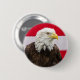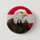 A wonderful image of a bald eagle posing in front of an American Flag.