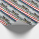 Beautiful USA patriotic eagle with colourful Christmas holiday lights wrapping paper. This lovely patriotic holiday wrapping paper features a flying eagle in a snowy winter background, holding a yellow ribbon, with colourful holiday strands of lights on a red white and blue background! A great addition to your patriotic or military holiday gift giving! This art design is available on cards and other gift items in our shop too! For more military Christmas holiday themed styles of cards, ornaments, gifts, stickers, tags, stamps and much more please visit our store!
