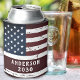 Add the finishing touch to your patriotic party with this USA American Flag can cooler in a distressed worn design. This united states of america flag can cooler is perfect for 4th of July party, Memorial day party favours, family reunions, military graduation or retirement party favours, police party and patriotic celebrations. Personalize this american flag can cooler with family name and event.