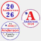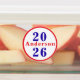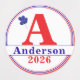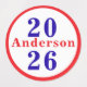 Row 1 - Design features the year in large blue text with family name in red displayed across front. Design is featured against a white background and bordered with a bright red circle.