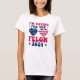 Make a bold statement with this eye-catching "I'm Voting for the Felon 2024" T-shirt. This unique design features heart-shaped sunglasses adorned with the American flag, combining patriotism with a touch of humour. The vibrant red, white, and blue colours make it perfect for election season, rallies, or just showing your political stance with a fun twist. This shirt is sure to spark conversations and bring a smile to those who see it. Show your support and make a memorable impression with this one-of-a-kind political tee.