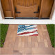 Doormat is shown with a July 4th patriotic USA Flag print design.