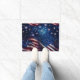 Doormat is shown with a July 4th patriotic USA Flag print design.