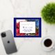 Flowers that remind us of “Old Glory” in an invitation to your big event. A formal card with foil framing and text - for Indepedence Day, Graduation or military accomplishments. On that note, I want to thank anyone who has served this country. God bless!