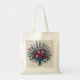 This tote bag showcases a beautifully balanced bouquet of vibrant red and blue flowers, arranged in a round shape. The detailed illustration captures the essence of elegance and boldness, making it a perfect accessory for those who appreciate both style and patriotism.