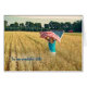 Young girl running in a wheat field with American flag. Card can be used for Birthday, Veterans Day, or any patriotic event.