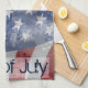 This patriotic kitchen towel can be used any time you want to show your love and patriotism for the Untied States, but especially on the 4th of July. Done with a contemporary grunge red white and blue flag, it boldly sports the title "proud american".
