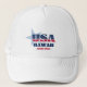 Hawaii trucker hat. A bold typography design with a blue star that highlights the US state of Hawaii, its year of statehood in 1959, and the initials of the USA infused with the stars and stripes of the American flag. It makes a wonderful patriotic gift or souvenir.