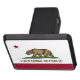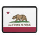 Enhance your vehicle's rear with pride using our hitch cover adorned with the distinctive flag of California. The cover prominently displays the iconic California state flag design, featuring a white field with a red stripe along the bottom, a red star in the upper left corner, and the California grizzly bear walking on green grass with the words "California Republic" below in white.