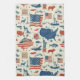 A bold and dynamic pattern showcasing the essence of American pride. Featuring the Statue of Liberty, the USA map, the American flag, and other USA landmarks and symbols, this kitchen towel captures iconic U.S. symbols in a cohesive and patriotic layout. Perfect for celebrating national holidays or expressing national spirit with a classic Americana touch.