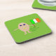 This awesome cork coaster features a funny cartoon of an egg with arms and legs. The egg has arms and legs and a small crack in its head exposing the white inside. It has blue eyes with a black pupil and a big smile where the yolk of the egg can be seen. The eggshell looks rough. This patriotic Irish egg proudly holds its flag and there is green text below the flag that reads "it's all about the craic". This fun design is great for Saint Patricks Day or for proud Irish men and women.
