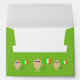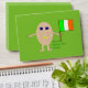 This envelope features a funny cartoon of an egg with arms and legs. The egg has arms and legs and a small crack in its head exposing the white inside. It has blue eyes with a black pupil and a big smile where the yolk of the egg can be seen. The eggshell looks rough. This patriotic Irish egg proudly holds its flag and there is green text below the flag that reads "it's all about the craic". This fun design is great for Saint Patricks Day or for proud Irish men and women. There is customizable text on the back so you can personalize it. There is room on the front to affix postage. This envelope will hold any A7 sized greeting card. .