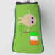 This awesome golf putter cover features a funny cartoon of an egg with arms and legs. The egg has arms and legs and a small crack in its head exposing the white inside. It has blue eyes with a black pupil and a big smile where the yolk of the egg can be seen. The eggshell looks rough. This patriotic Irish egg proudly holds its flag and there is green text below the flag that reads "it's all about the craic". This fun design is great for Saint Patricks Day or for proud Irish men and women.