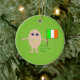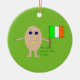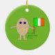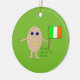 This ornament features a funny cartoon of an egg with arms and legs. The egg has arms and legs and a small crack in its head exposing the white inside. It has blue eyes with a black pupil and a big smile where the yolk of the egg can be seen. The eggshell looks rough. This patriotic Irish egg proudly holds its flag and there is green text below the flag that reads "it's all about the craic". This fun design is great for Saint Patricks Day or for proud Irish men and women.