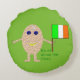 This awesome round pillow features a funny cartoon of an egg with arms and legs. The egg has arms and legs and a small crack in its head exposing the white inside. It has blue eyes with a black pupil and a big smile where the yolk of the egg can be seen. The eggshell looks rough. This patriotic Irish egg proudly holds its flag and there is green text below the flag that reads "it's all about the craic". This fun design is great for Saint Patricks Day or for proud Irish men and women.