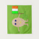 This awesome tapestry features a funny cartoon of an egg with arms and legs. The egg has arms and legs and a small crack in its head exposing the white inside. It has blue eyes with a black pupil and a big smile where the yolk of the egg can be seen. The eggshell looks rough. This patriotic Irish egg proudly holds its flag and there is green text below the flag that reads "it's all about the craic". This fun design is great for Saint Patricks Day or for proud Irish men and women.