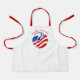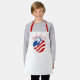 This apron is shown in a patriotic Happy 4th of July print, perfect for July 4th BQ.