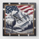Patriotic Moose Mountain Rustic Square Wall Clock