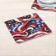 These paper coasters are shown in a patriotic July 4th stars and stripes flag print design.