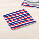 This paper drink coaster is shown in a patriotic ribbons print, perfect for your July 4th home decor .