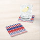 This paper drink coaster is shown in a patriotic stars and stripes print, perfect for your July 4th home décor.