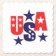 This paper drink coaster is shown in a patriotic USA stars print, perfect for your July 4th home décor.