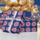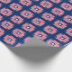 This patriotic wrapping paper is printed with a repeating pattern of the American Flag arranged in quilt like squares and a white star at the centre of each on a blue background.