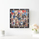 This charming wall clock features a delightful group of patriotic pets, including dogs, cats, and a bunny, adorned in festive red, white, and blue bandanas and hats. Set against a backdrop of balloons and an American flag, this unique timepiece is perfect for animal lovers and adds a whimsical touch of national pride to any home decor.