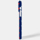 Patriotic Red White and Blue Stars Design iPhone Phone Case features a modern pattern of red and white stars on a navy blue background. Perfect for a summer birthday party or a patriotic Memorial Day celebration.