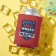 "Three cheers for the red white and brew" - this clever art features a navy blue shield shape set against a red background. Inside the shield are the words "Three cheers for the red white and brew" along with creamy-white stars and a modern ribbon banner. The reverse side has a text box where you can customize with your event theme, name, or party date. Bright and eye-catching, this would be perfect for summer barbecues, political or election day parties, or July 4th celebrations.