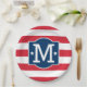 Patriotic Red White Blue Custom Monogram Initial Paper Plate