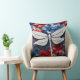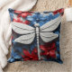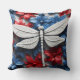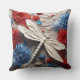 PATRIOTIC RED WHITE BLUE DRAGONFLIES & FLOWERS THROW PILLOW