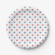 Cute red white and blue polka dot pattern modern cute patriotic American holiday Party Paper Plates.