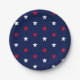 Patriotic red white and dark navy blue stars pattern cute modern fun festive holiday party Paper Plates.